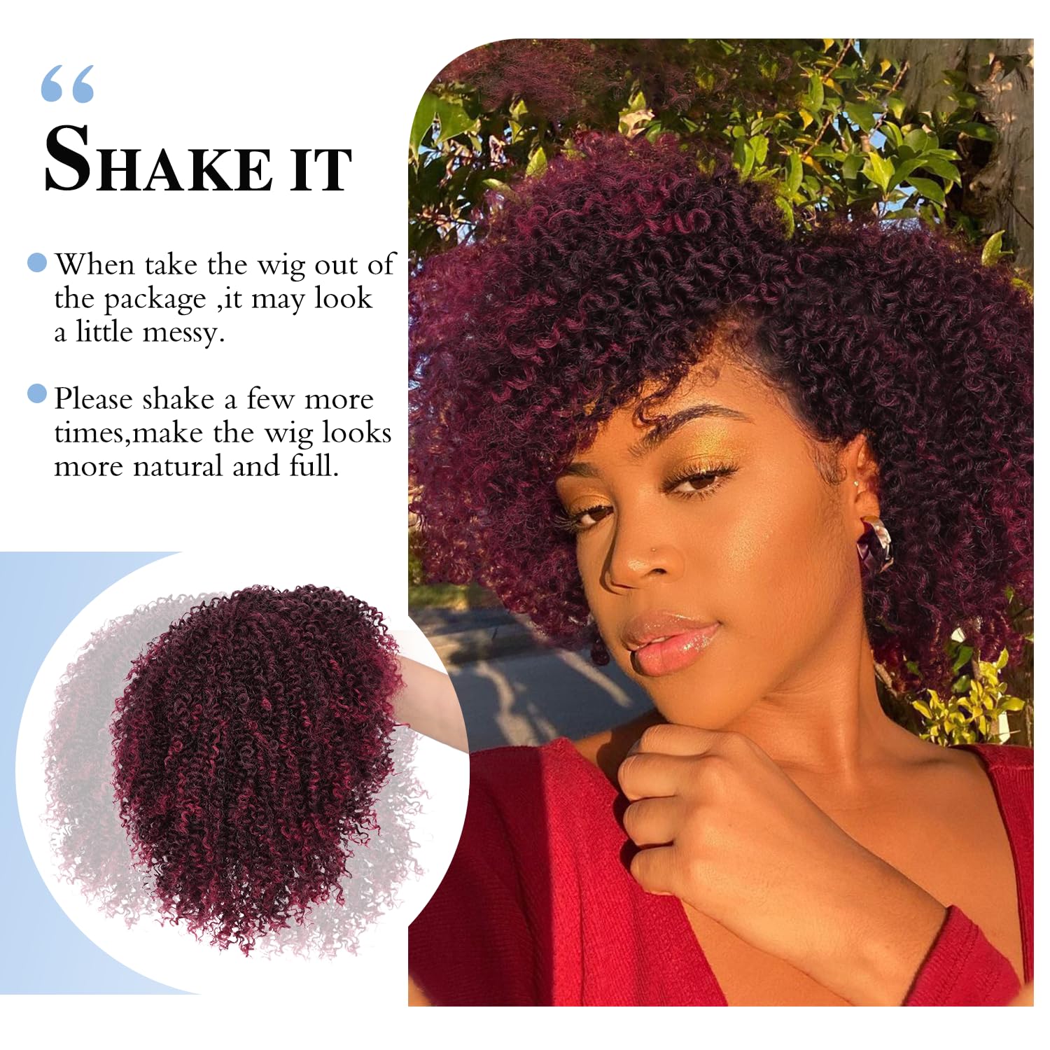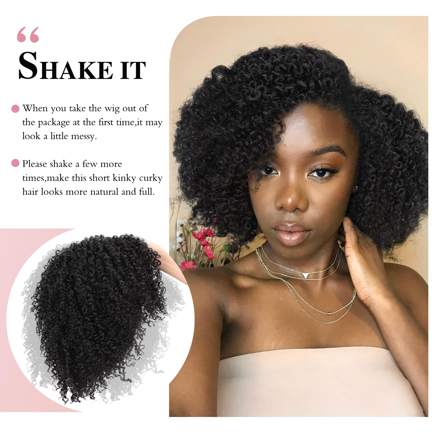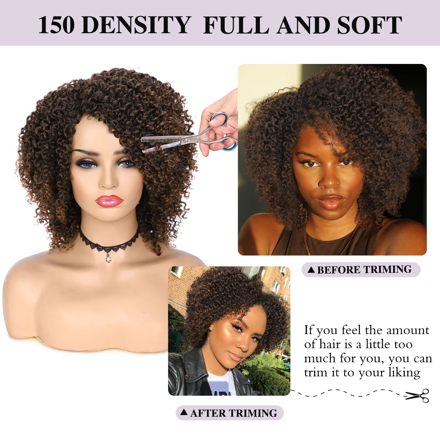 Texture:Short Kinky Curly Wigs Side Part Afro Curly Wig