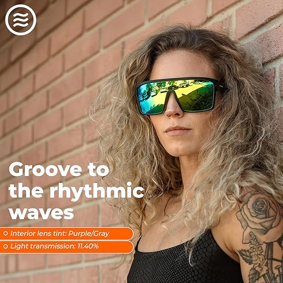 The shield frame on these sunglasses is so cool—everyone asks where I got them. Beyond style, the polarized lenses are amazing for glare reduction, and the UV protection gives me confidence. They’re comfortable to wear all day too.